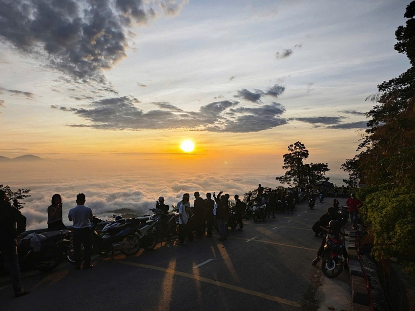Vào sáng sớm hoặc khi hoàng hôn buông xuống, những dải mây bồng bềnh vươn mình trong làn sương mờ ảo, phủ kín các thung lũng, tạo nên một bức tranh thiên nhiên tuyệt mỹ mà khó nơi nào có thể so sánh được. Đây chính là thời điểm lý tưởng để du khách lên Ba Vì, trải nghiệm cảm giác ngồi giữa biển mây, tận hưởng không khí trong lành và khoảnh khắc yên bình giữa thiên nhiên. Ảnh Chiến Thắng
