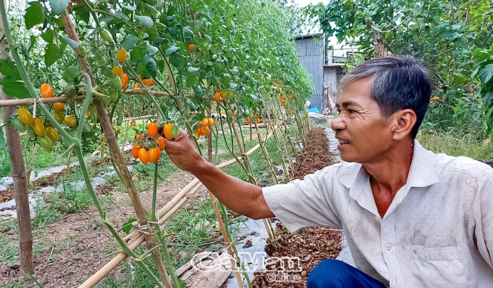 Sau khi áp dụng thành công mô hình trồng nho từ năm 2020, năm 2023, ông Hoàng tìm mua hạt giống 2 loại cây mới: cà chua bạch tuộc của Nhật Bản và cà chua Nova của Hàn Quốc, đem về trồng thử nghiệm tại vườn nhà. Kết quả, cây khá thích nghi với điều kiện thời tiết, thổ nhưỡng ở địa phương và phát triển khá tốt. Hiện tại, hơn 100 cây cà chua Nova bắt đầu cho thu hoạch; 100 cây cà chua bạch tuộc thì đang cho trái, dự kiến đến Tết sẽ thu hoạch.