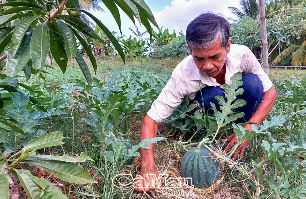 Vườn dưa hấu của ông Hoàng dự kiến sẽ cho thu hoạch gần cuối tháng Chạp.