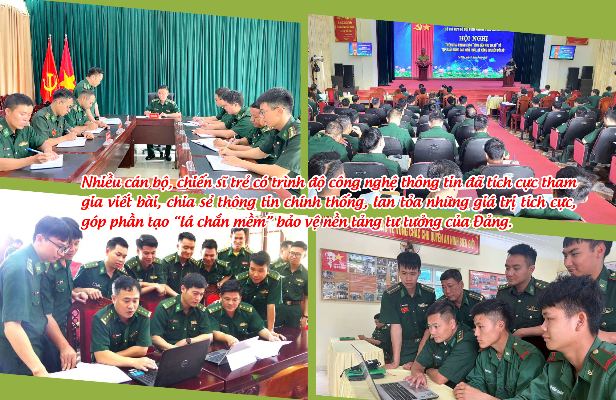 Xác định việc đấu tranh trên không gian mạng là yếu tố quan trọng trong bảo vệ nền tảng tư tưởng của Đảng, nhiều cán bộ, chiến sĩ trẻ có trình độ công nghệ thông tin đã tích cực tham gia viết bài, chia sẻ thông tin chính thống, lan tỏa những giá trị tích cực, góp phần tạo “lá chắn mềm” bảo vệ nền tảng tư tưởng của Đảng. Mỗi năm, các lực lượng đã đăng tải, chia sẻ hàng trăm tin, bài tuyên truyền tích cực trên mạng xã hội, góp phần định hướng dư luận, củng cố niềm tin của cán bộ, chiến sĩ và nhân dân vào sự lãnh đạo của Đảng.