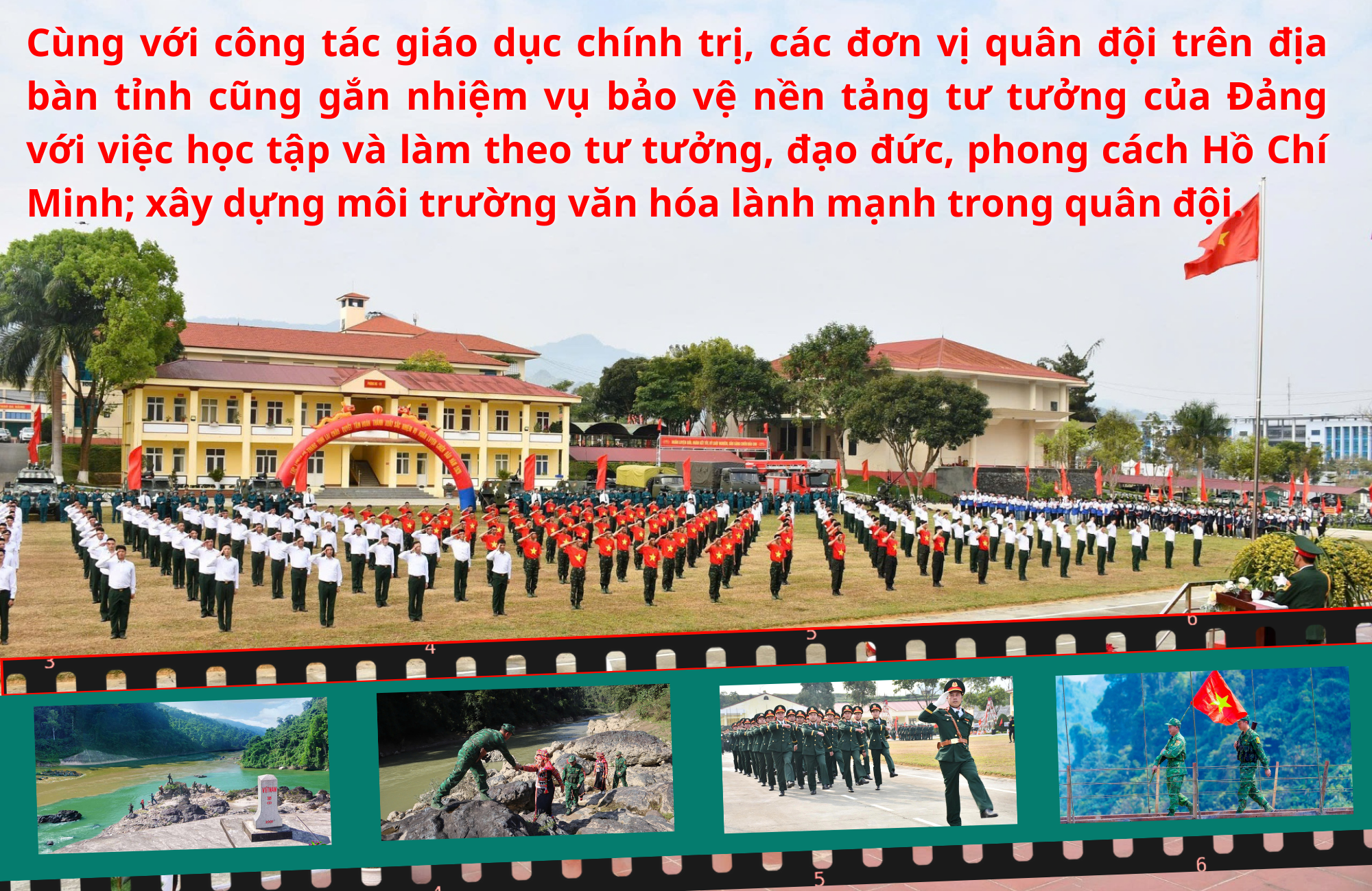 Cùng với công tác giáo dục chính trị, các đơn vị quân đội trên địa bàn tỉnh cũng gắn nhiệm vụ bảo vệ nền tảng tư tưởng của Đảng với việc học tập và làm theo tư tưởng, đạo đức, phong cách Hồ Chí Minh; xây dựng môi trường văn hóa lành mạnh trong quân đội. Thông qua các phong trào thi đua quyết thắng, nhiều mô hình hiệu quả được duy trì như “Mỗi ngày một tin tốt, mỗi tuần một câu chuyện đẹp”, “Chi đoàn không có cán bộ, đoàn viên vi phạm kỷ luật”. Góp phần hình thành bản lĩnh chính trị vững vàng, ý chí quyết tâm cao trong thực hiện nhiệm vụ.