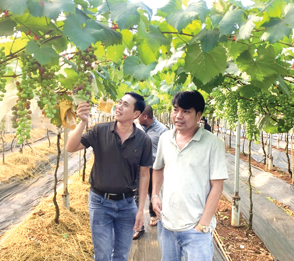 | Anh Nguyễn Hữu Thành trong vườn nho đen không hạt thuộc Điểm du lịch canh nông Bồng Lai Farm |